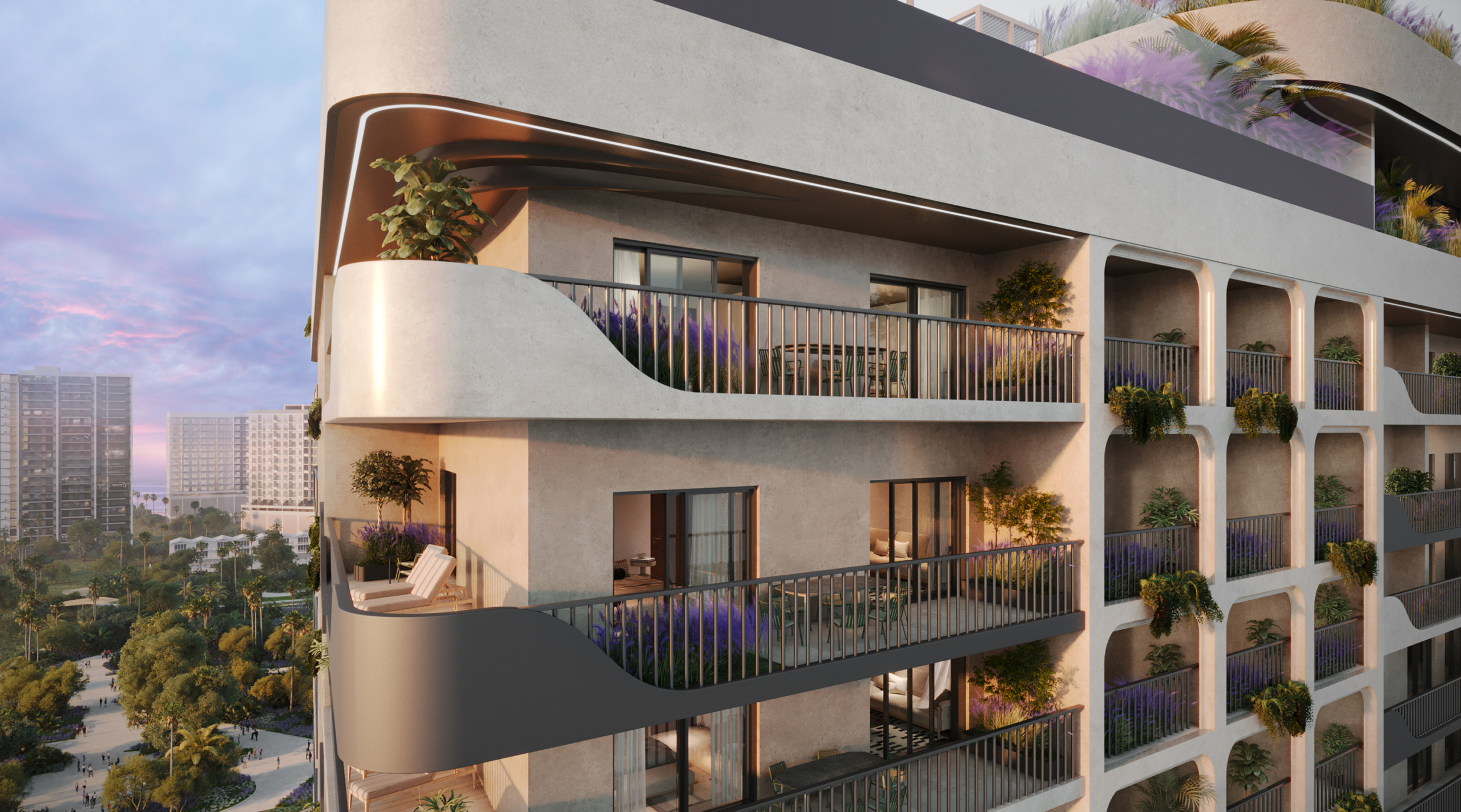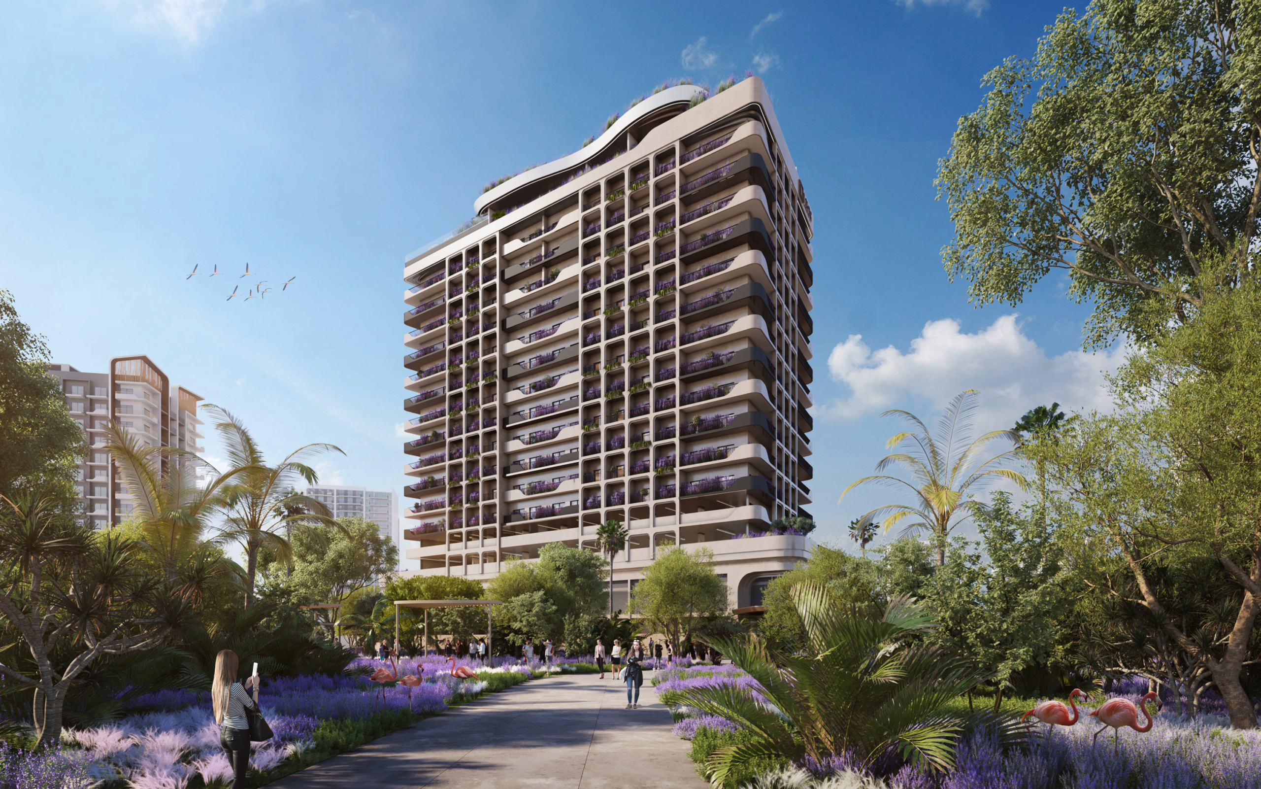 Il progetto offre 208 appartamenti rifiniti secondo i più alti standard europei, con tipologie studio, 1 o 3 camere da letto e terrazze soleggiate — alcune con piscina privata!